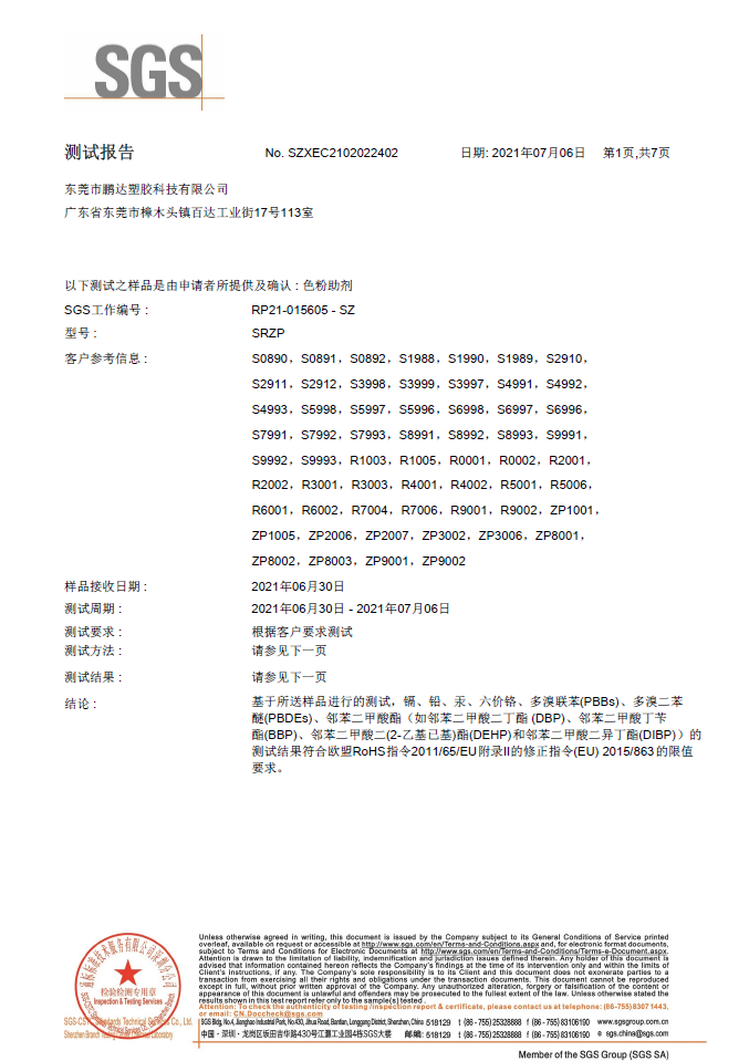 原材料通過SGS測(cè)試符合歐盟REACH,PaHS、ROHS及無鹵指令,備有美國